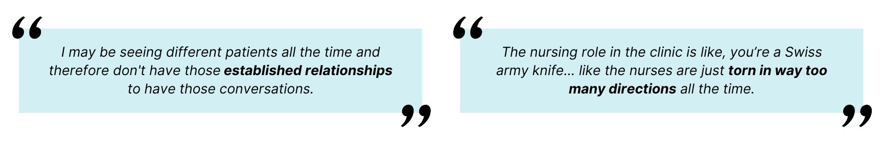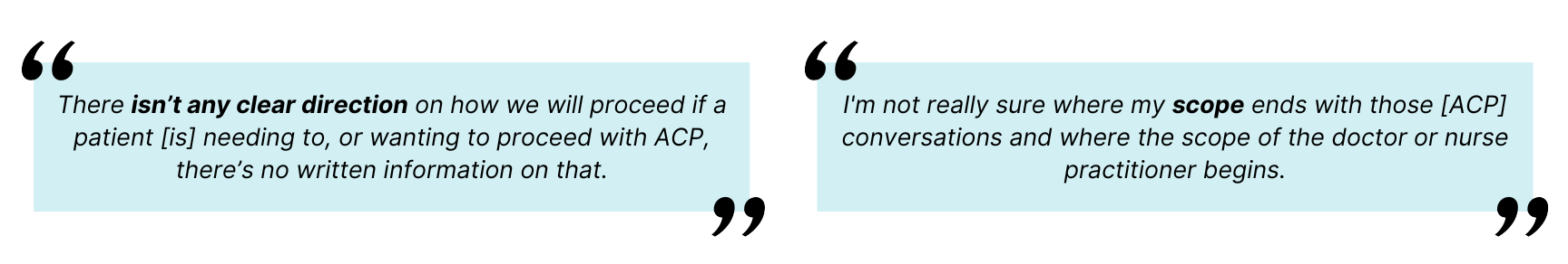 2. Structural barriers, a lack of time and space, challenges with continuity of care within nursing practice and interdisciplinary team dynamics Lack of time, space, and privacy to hold ACP conversations with patients and their families; challenges with continuity in nursing care that inhibit nurses from establishing longitudinal relationships with patients; and team dynamics that prevent interdisciplinary collaboration when approaching ACP.