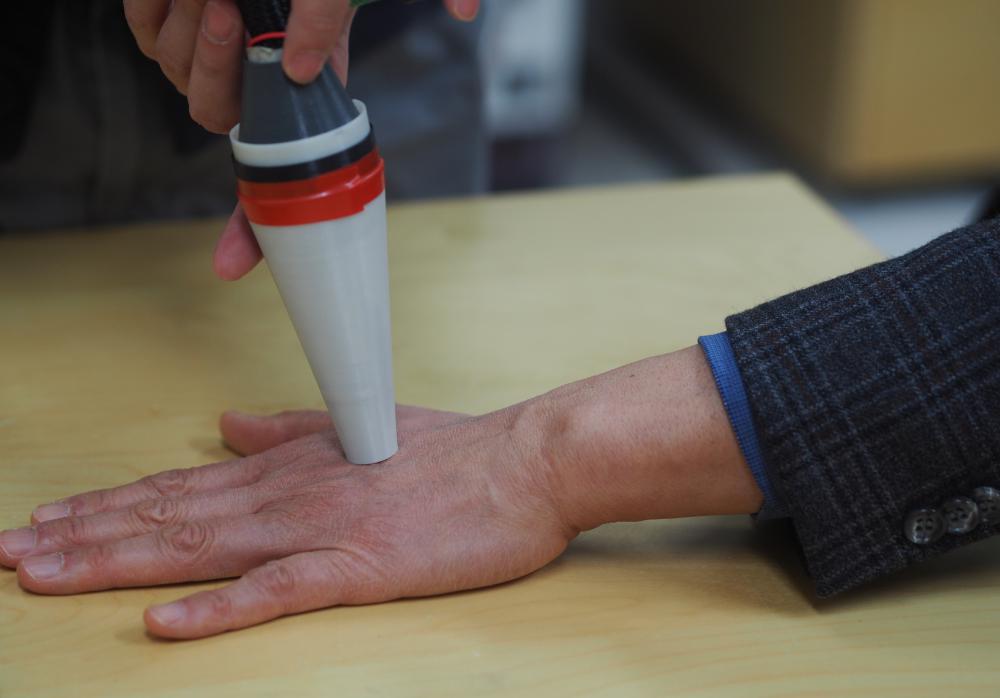 A research program focused on early detection and epidemiological research on skin cancer. We have been developing artificial intelligence and traditional machine learning methods for detecting skin cancer from photographs taken by digital cameras and smartphones. New devices and technologies are also being developed to compliment the advanced software techniques. The melanoma probe (pictured above) is based on the phenomenon of optical polarization, and was developed to help provide a new source of rapid skin lesion information. The research team also investigates the prognosis and risk factors of melanoma, exploring new ways to extract and analyze information from both biopsied samples and patients in vivo.